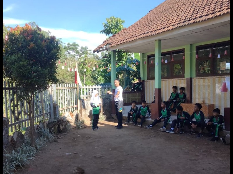 Siswa - Siswi Kelas V SDN 3 CAMPOAN Mengikuti Materi Tolak Peluru Secara Teori Dan Praktek
